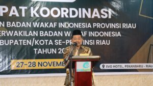 Perwakilan Badan Wakaf Indonesia (BWI) Provinsi Riau kembali menggelar Rapat Koordinasi (Rakor) Tahunan bersama perwakilan BWI kabupaten/kota se-Provinsi Riau pada 27–28 November 2025 di Evo Hotel Pekanbaru. Kegiatan ini menjadi agenda strategis untuk memperkuat tata kelola wakaf di Provinsi Riau sekaligus menyinergikan langkah-langkah pembangunan wakaf produktif di daerah.